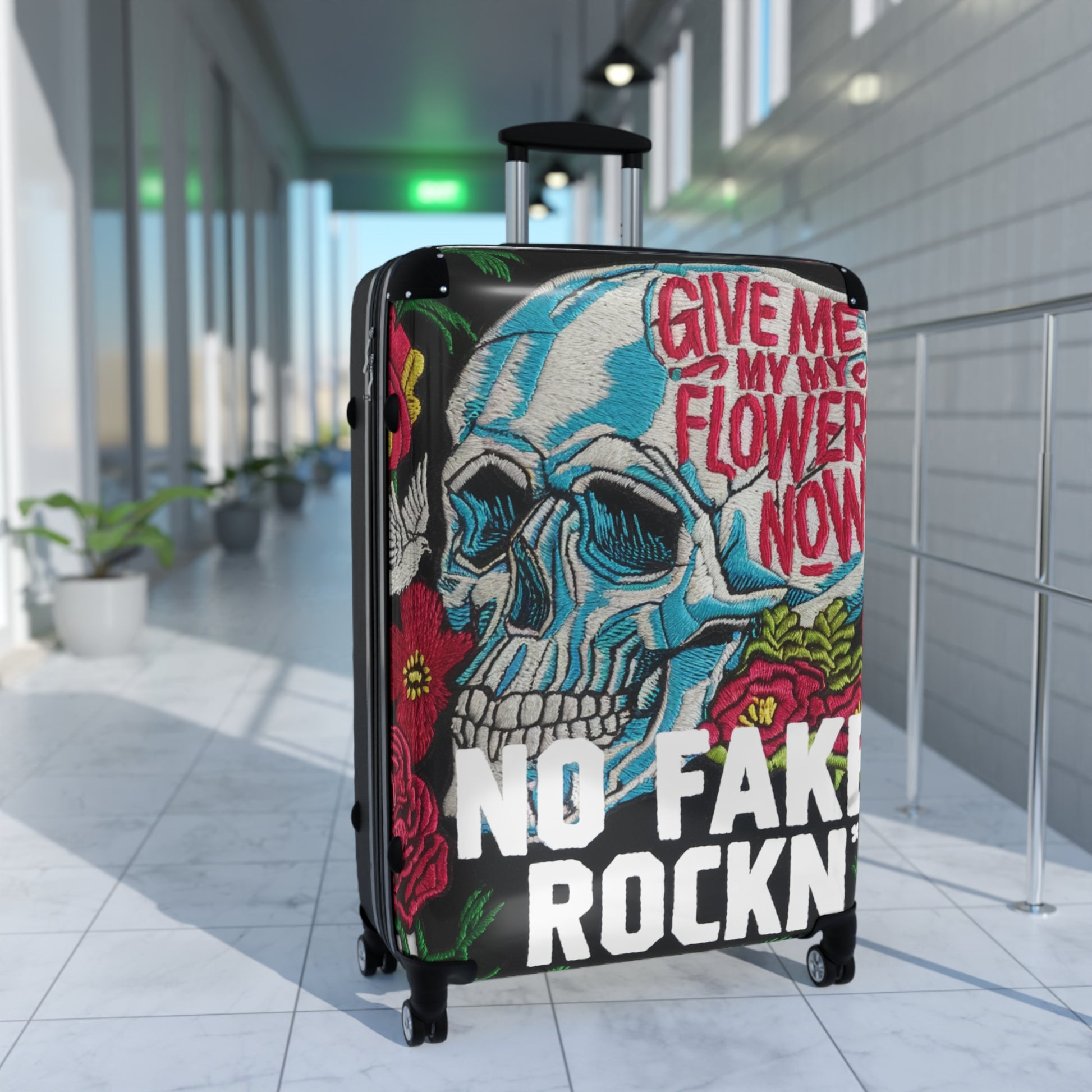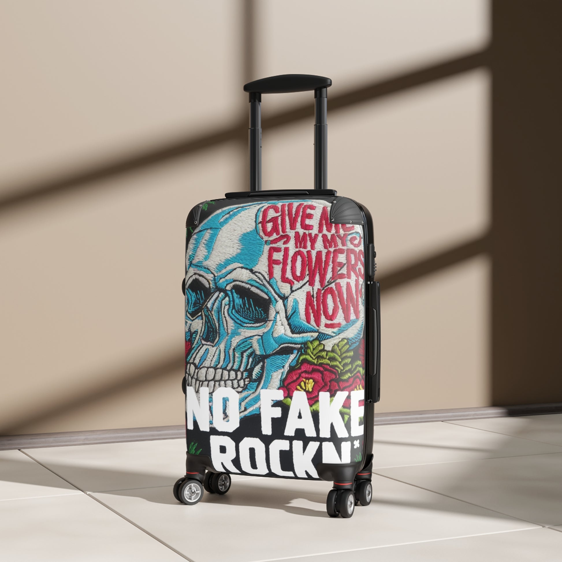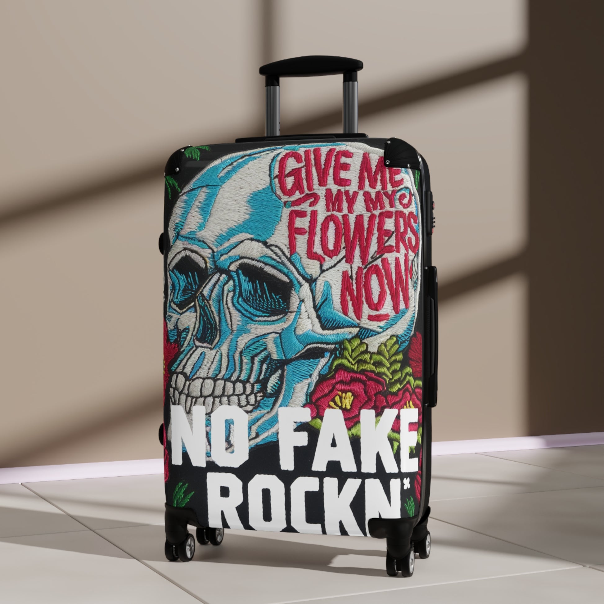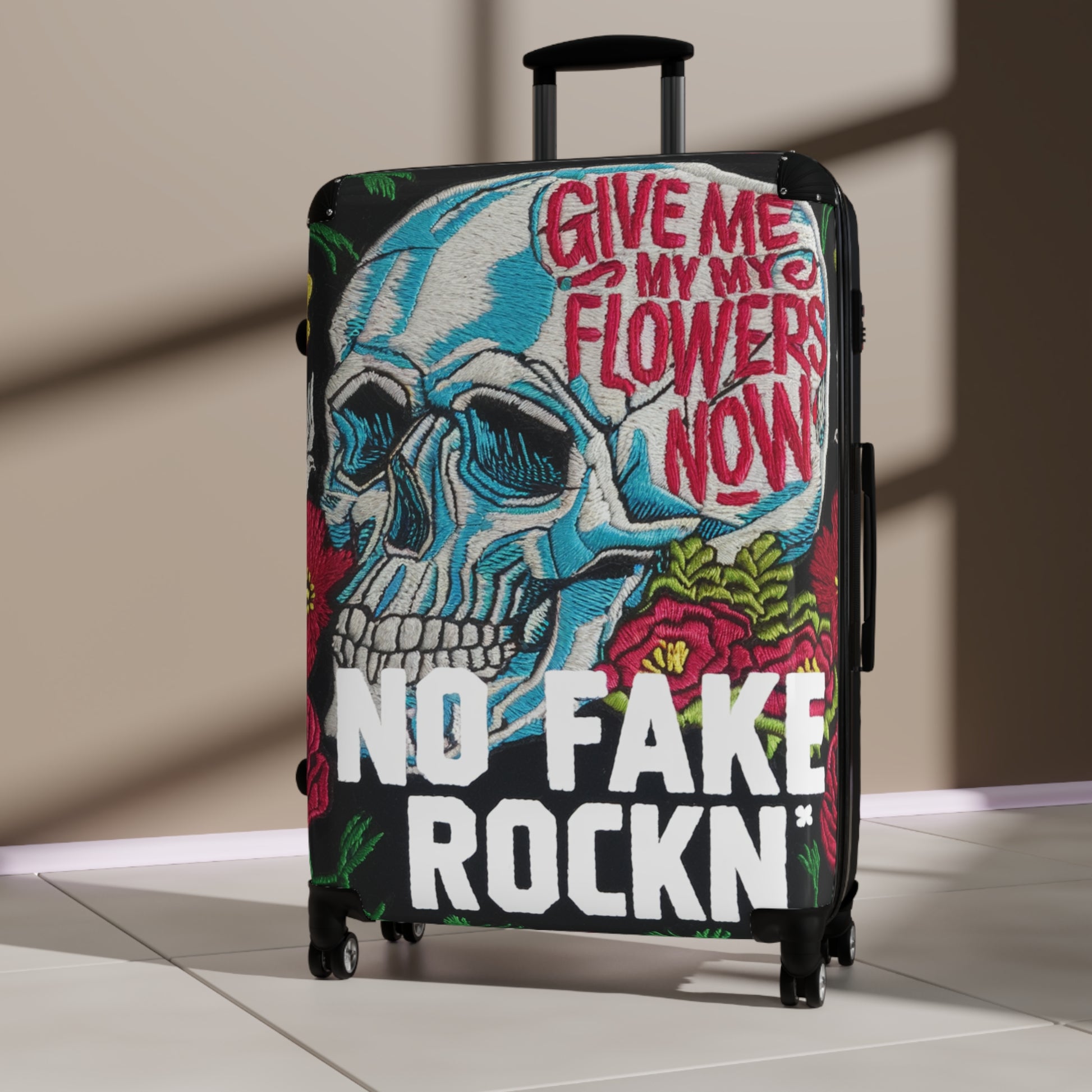Please note: Your design is printed on a canvas that may slightly crease near the suitcase's edges.